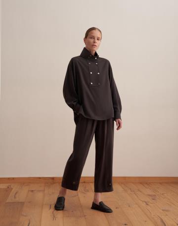 Çıt Çıt Kapamalı İpeksi Gömlek Kahve