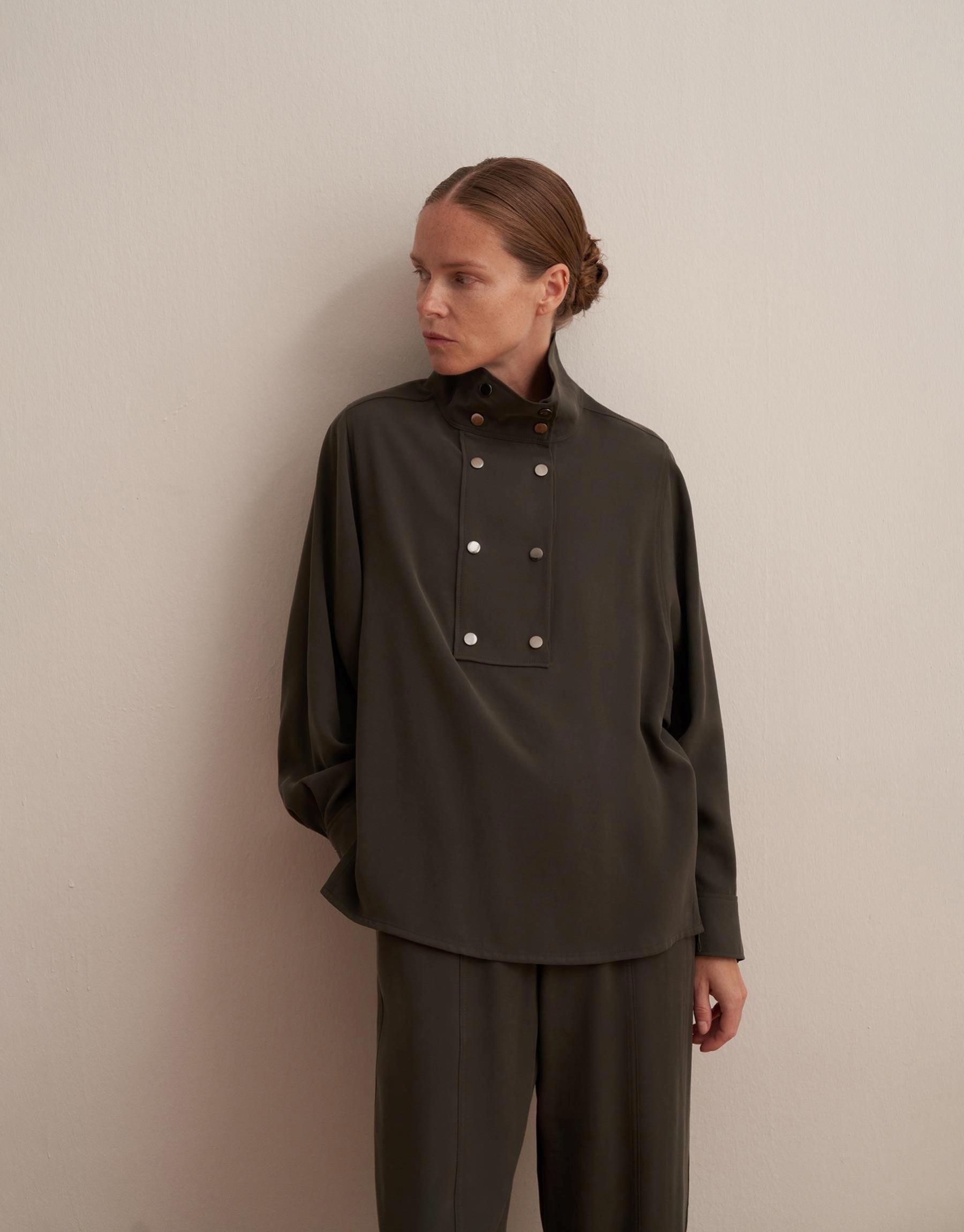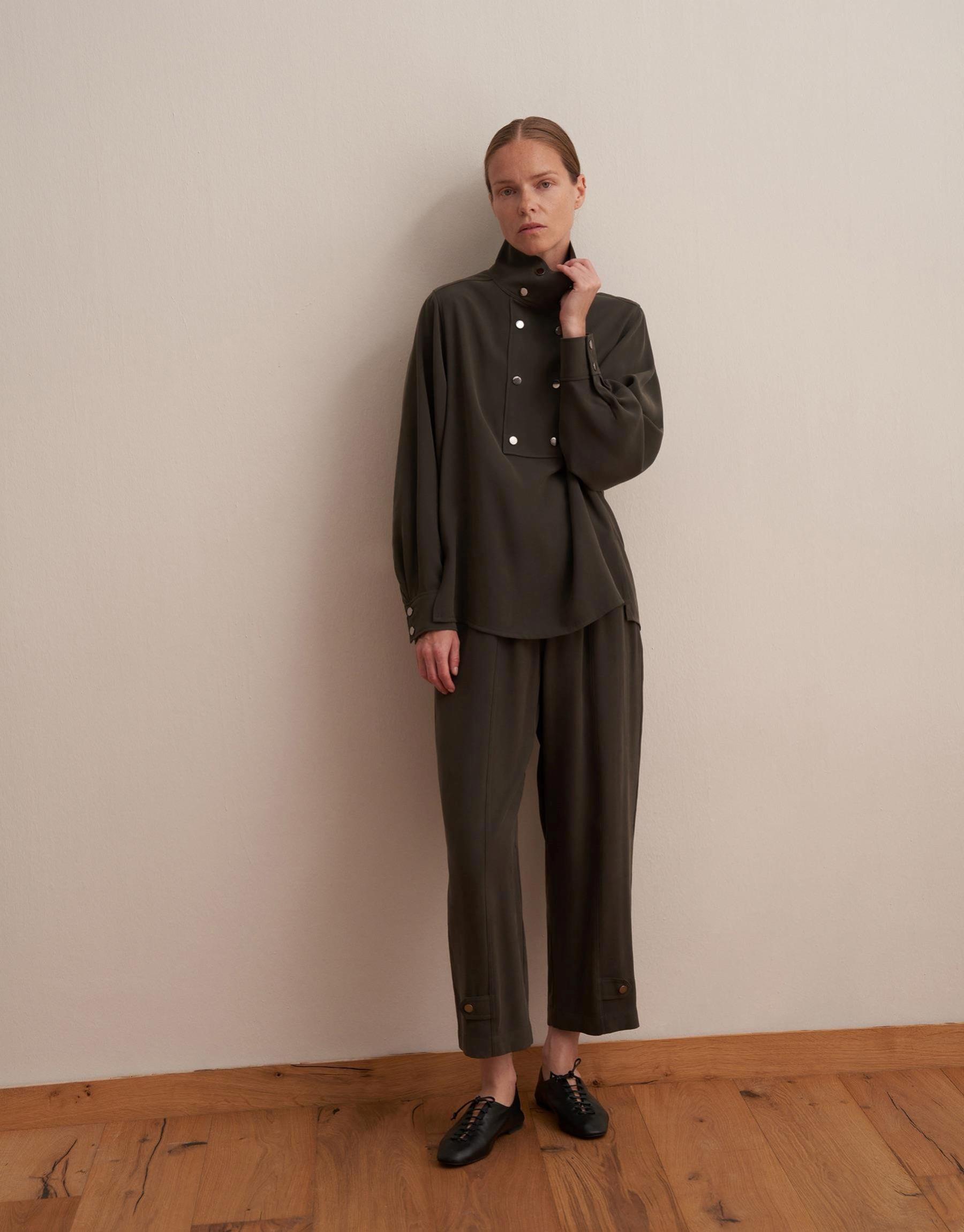 Paçası Ayarlanabilir İpeksi Pantolon Koyu Haki