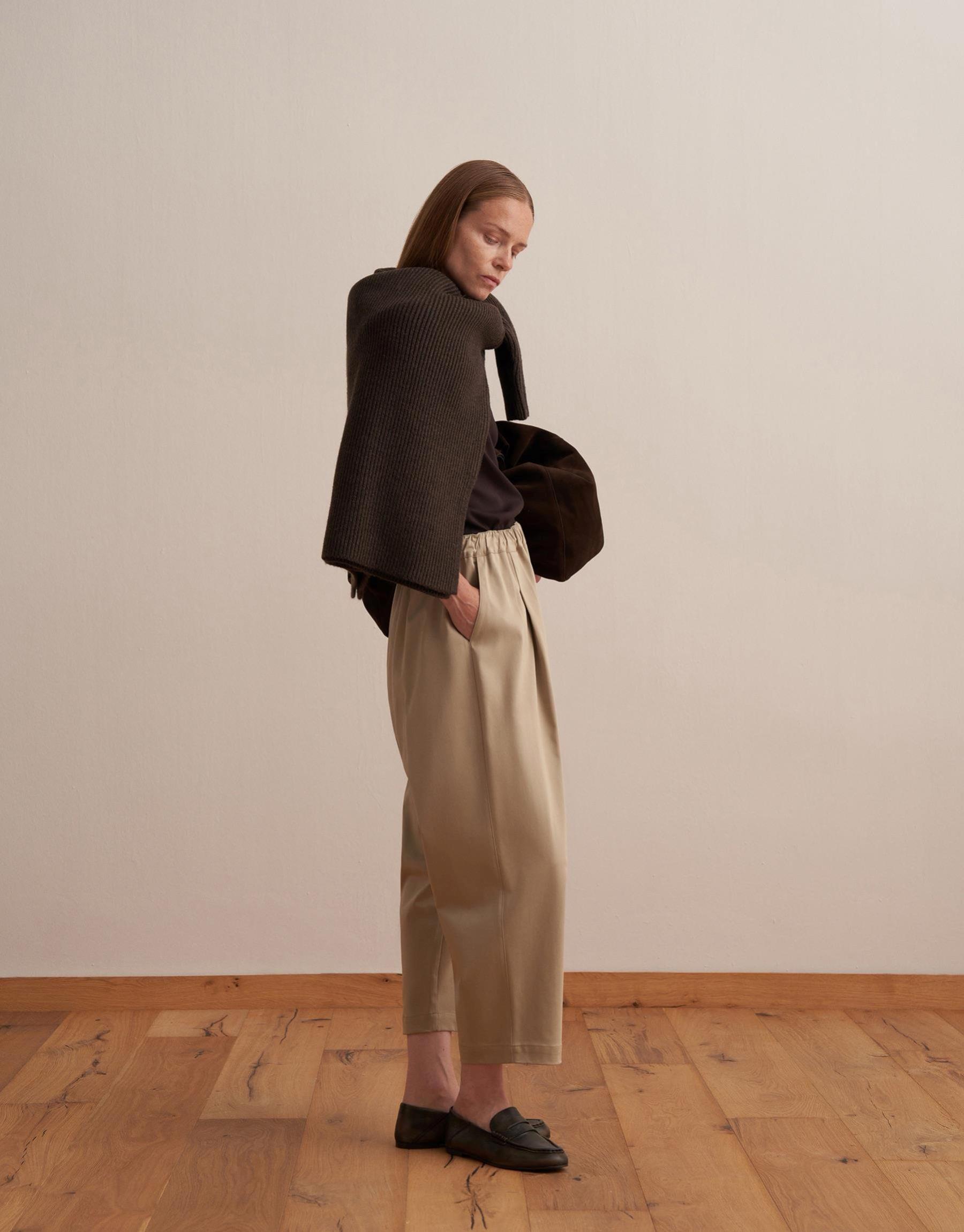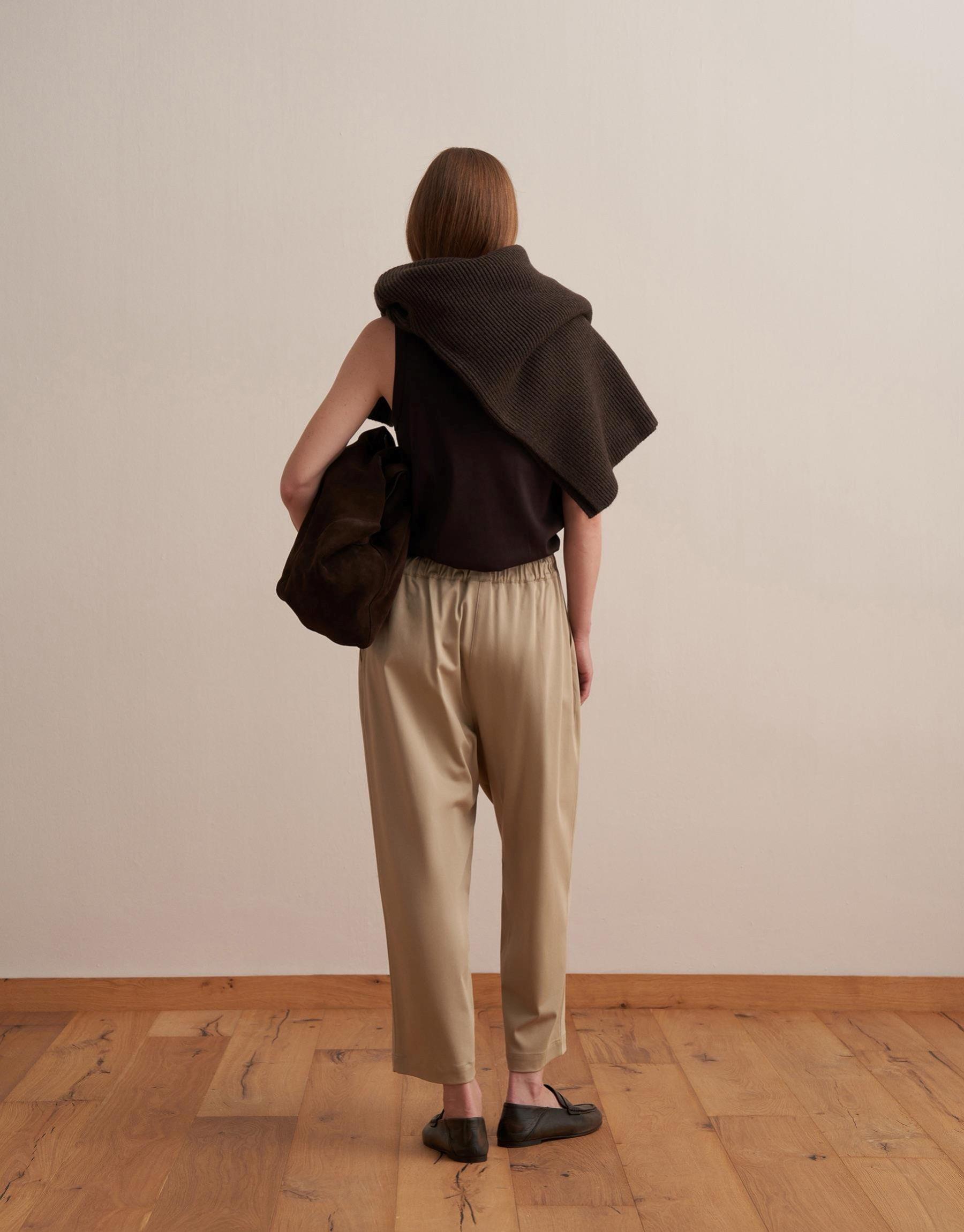 Büzgülü Pamuklu Pantolon Ekru