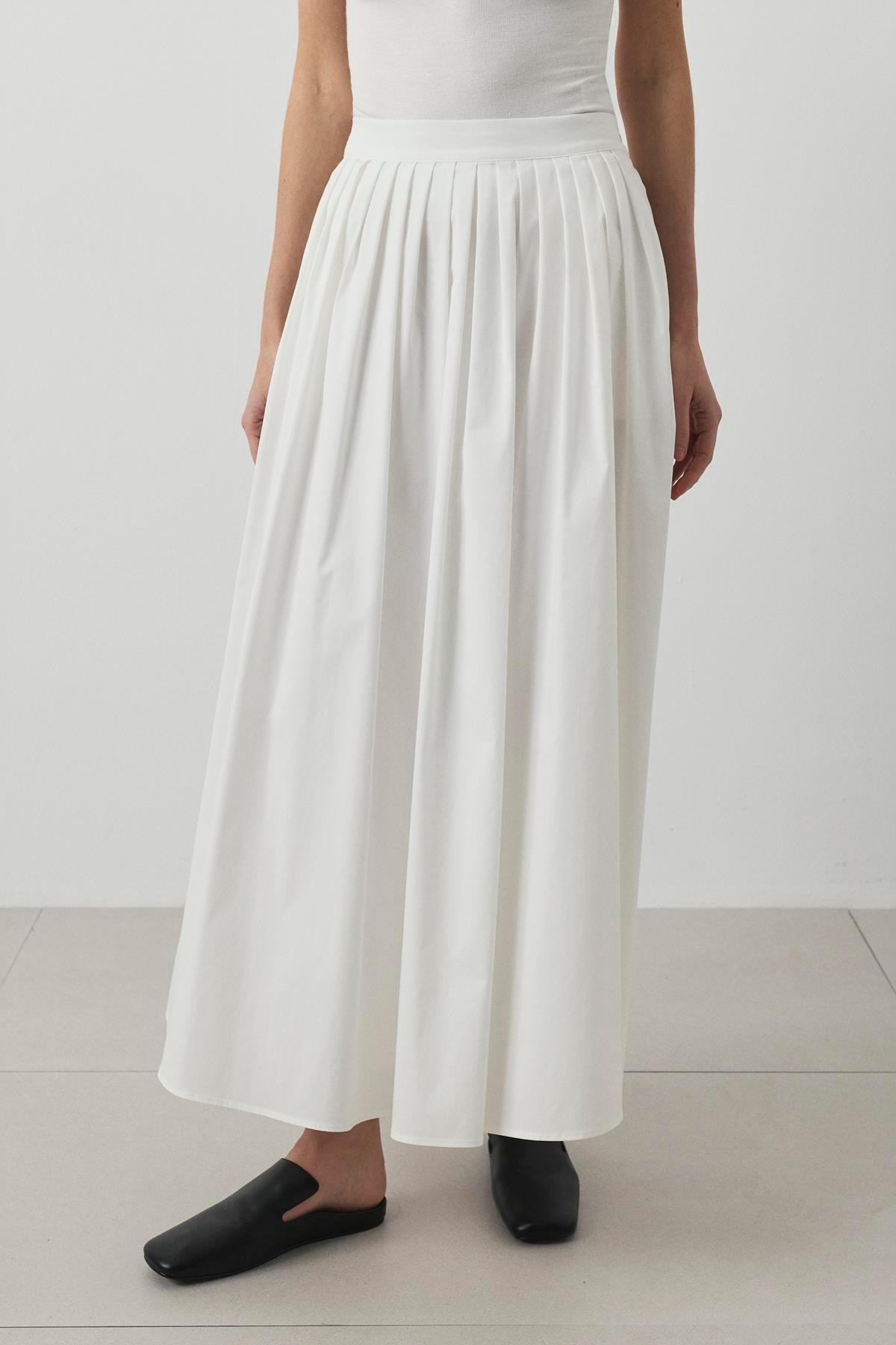 Salsa Paper Touch Pileli Koton Etek Beyaz