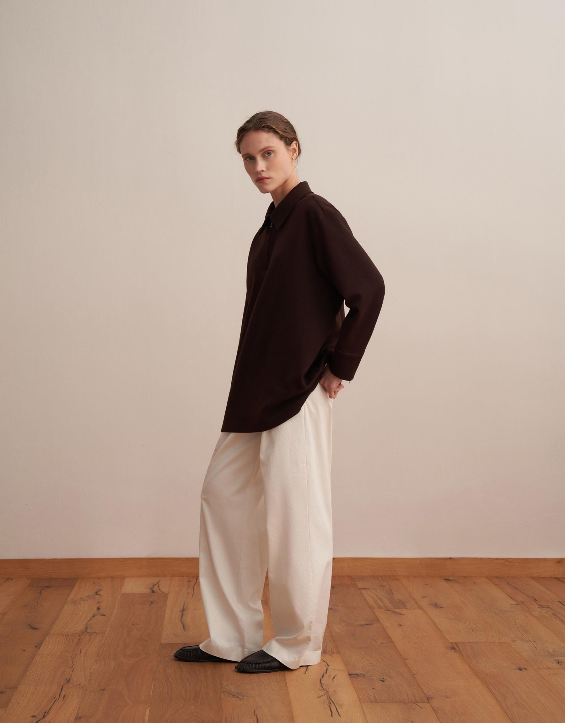 %100 Pamuk Çizgili Sweatshırt Kahve