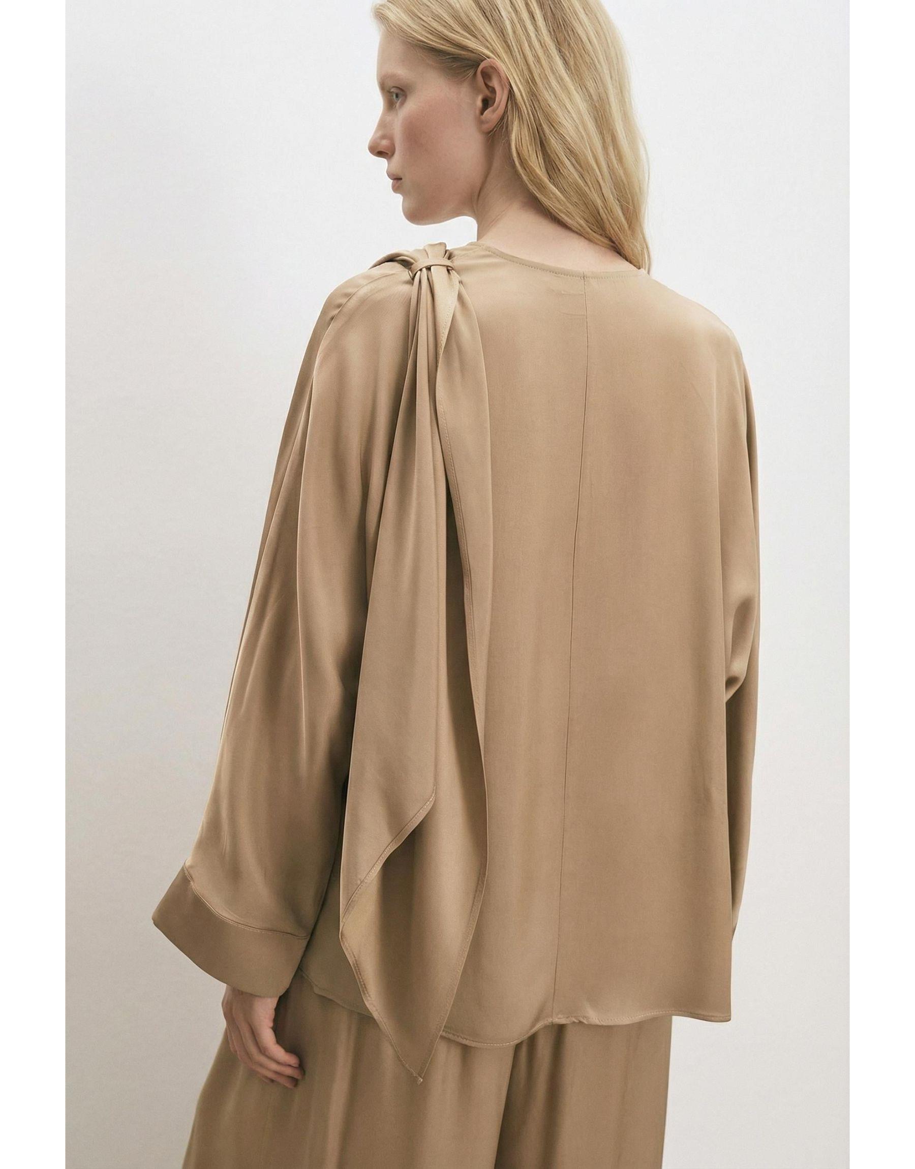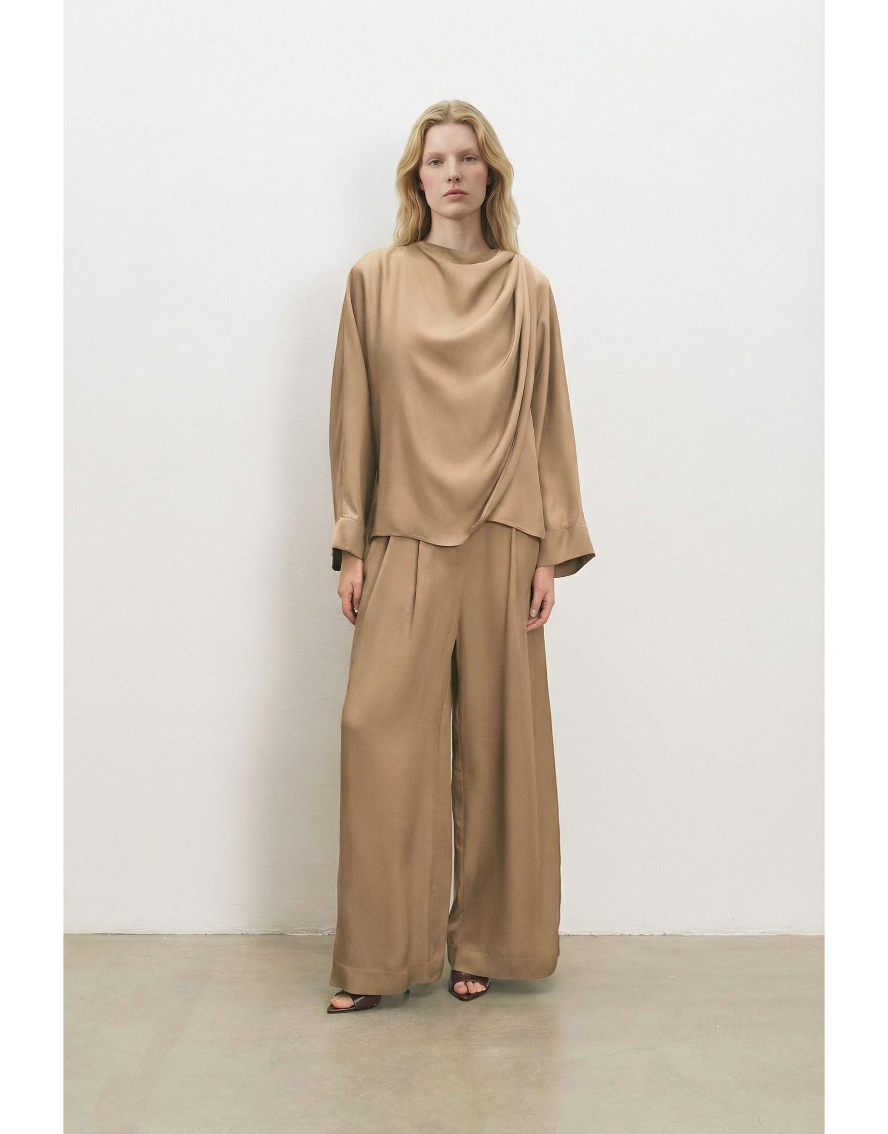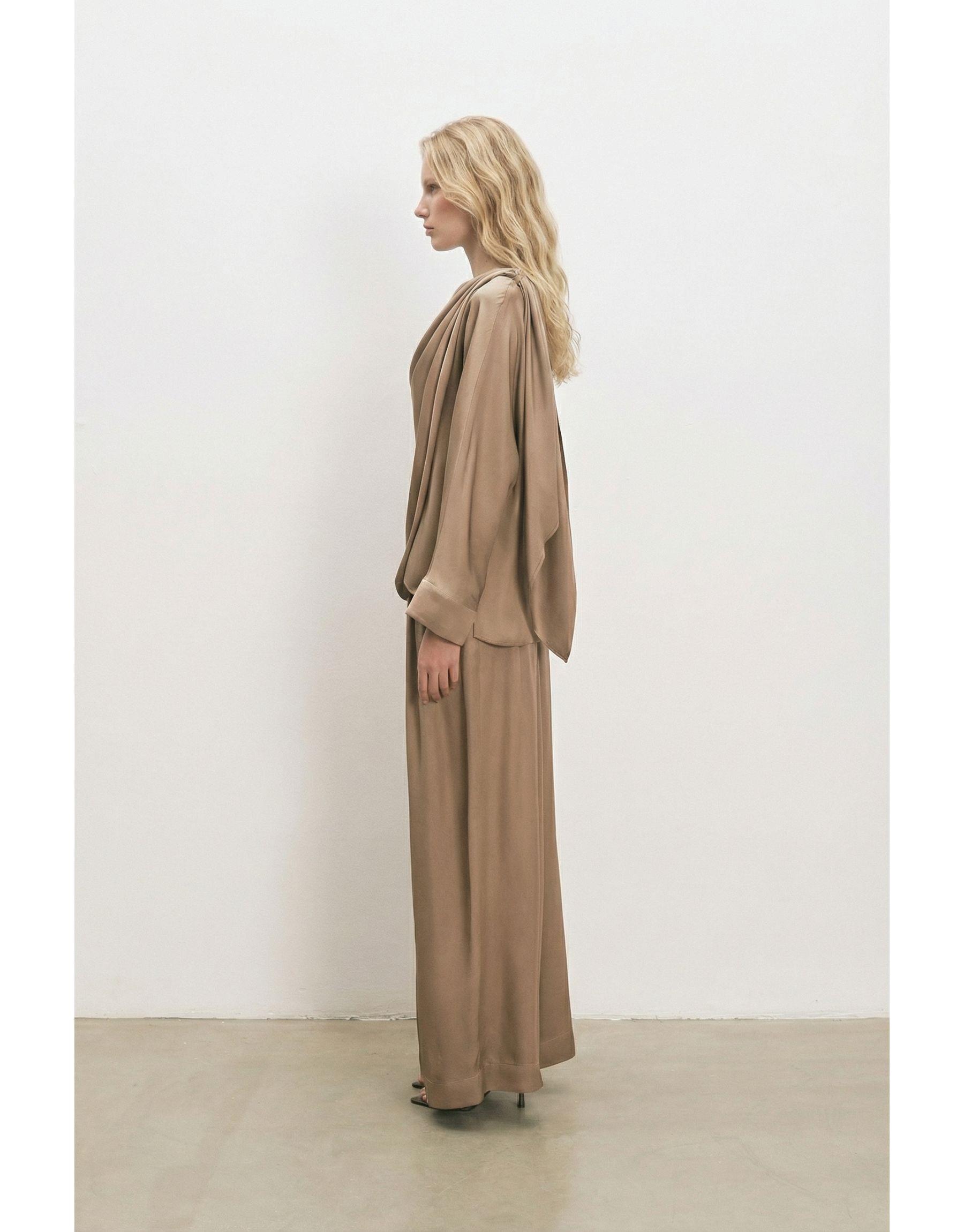 Aresa Asetat Şal Detaylı Pantolonlu Takım Camel