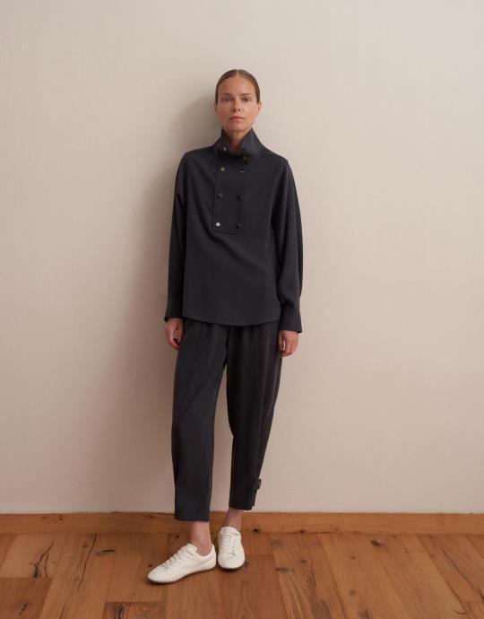 Büzgülü Pamuklu Pantolon Lacivert