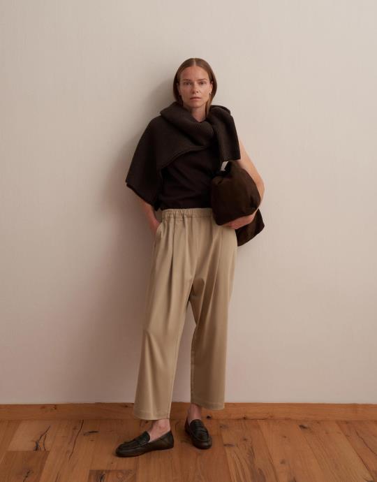 Büzgü Pileli Pantolon Bej