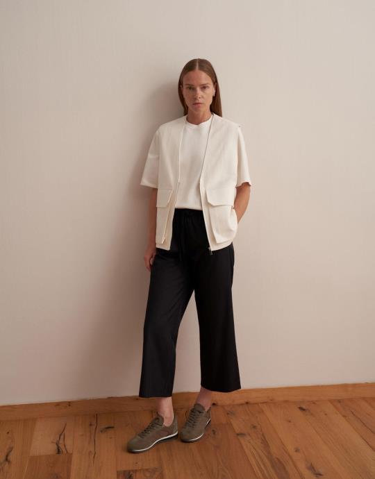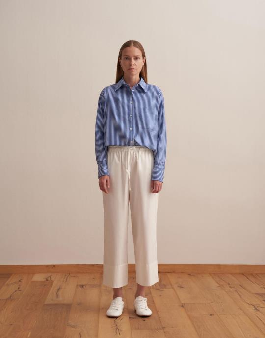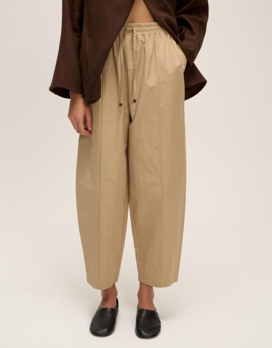 Büzgülü Pamuklu Pantolon Ekru