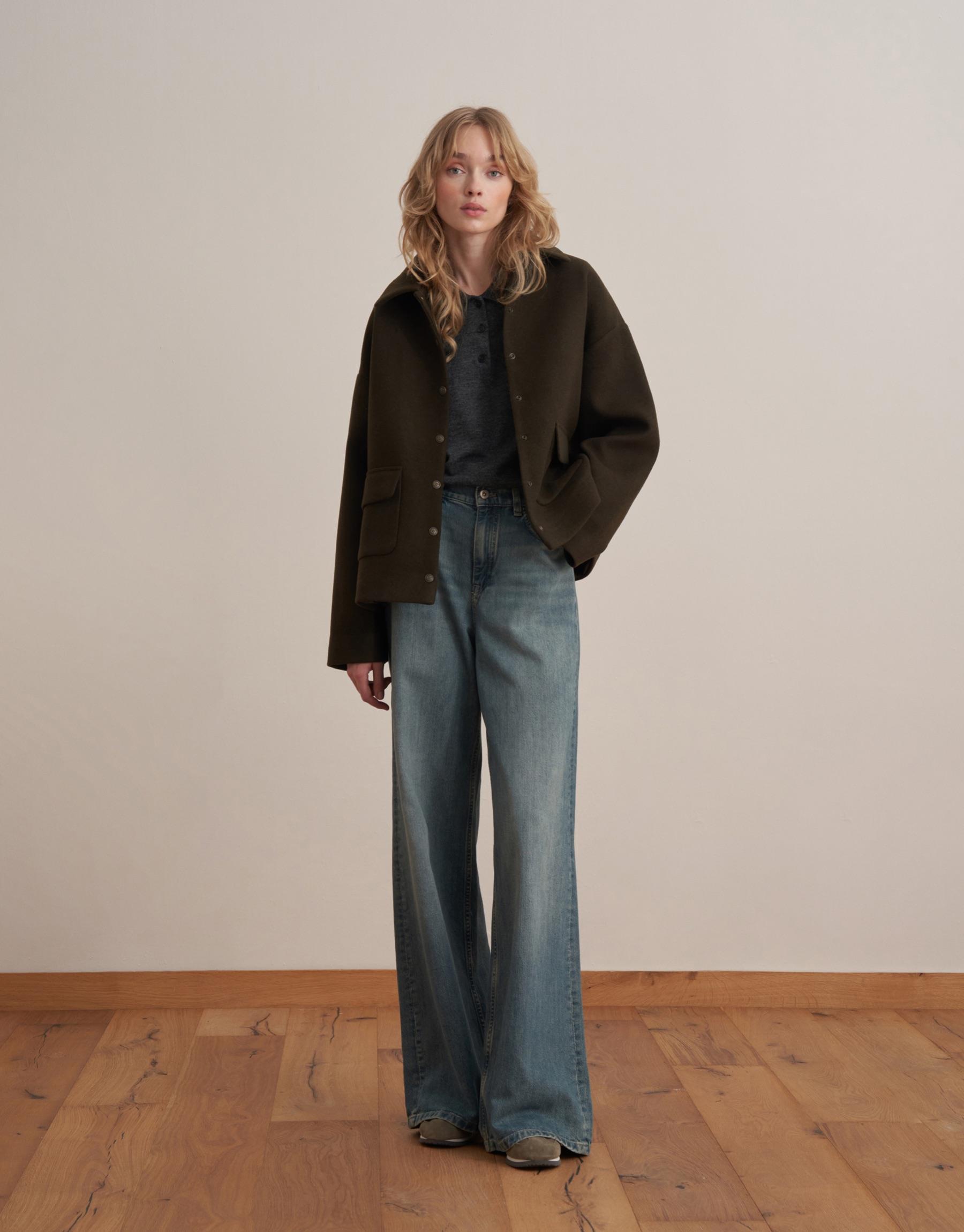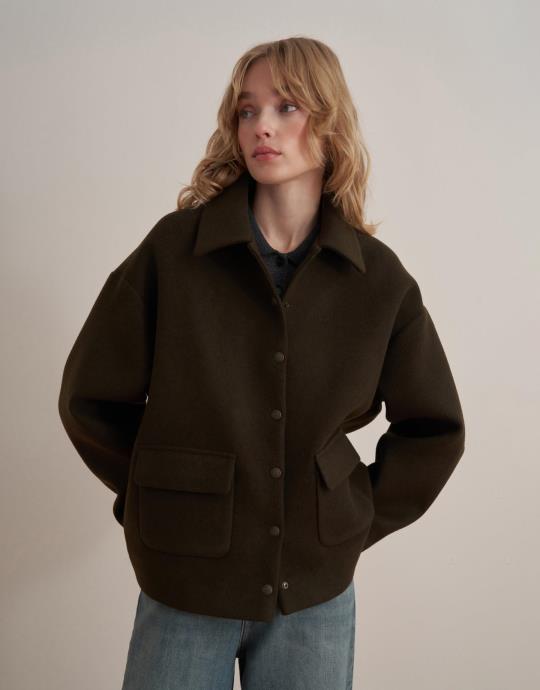 Çıt Çıt Kapamalı Yün Karışımlı Kaban Haki