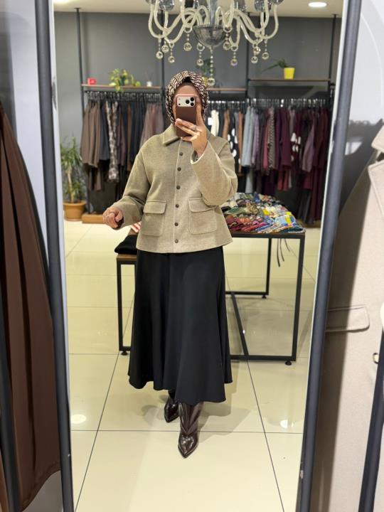 Çıt Çıt Kapamalı Yün Karışımlı Kaban Bej