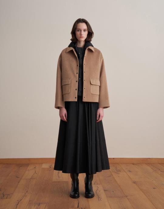 Çıt Çıt Kapamalı Yün Karışımlı Kaban Camel