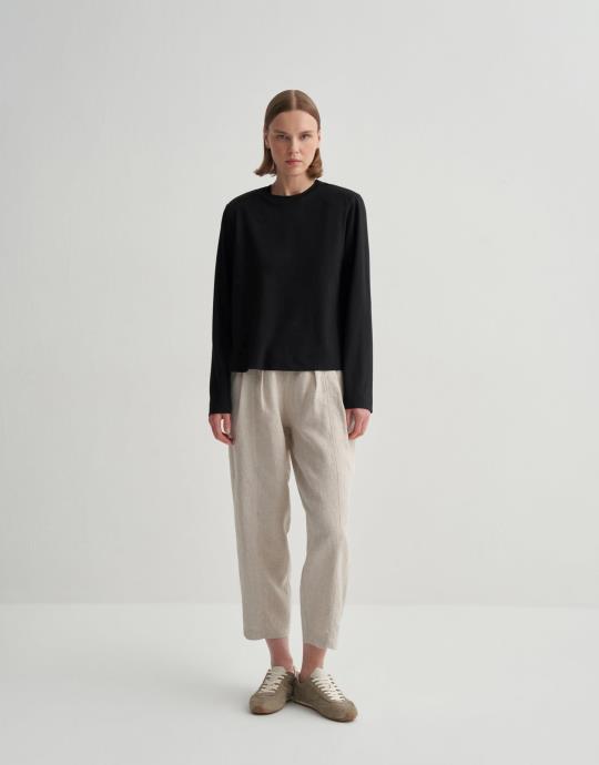 Rayon Karışımlı Vatkalı Bluz Siyah