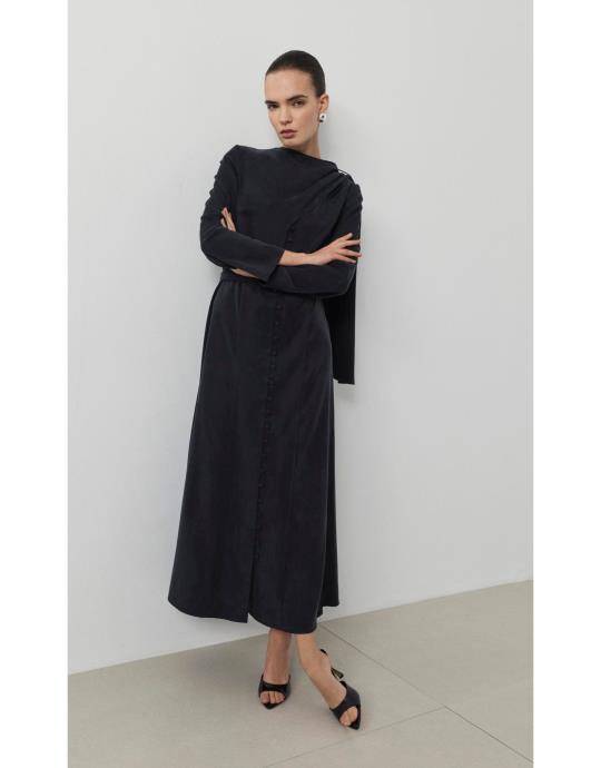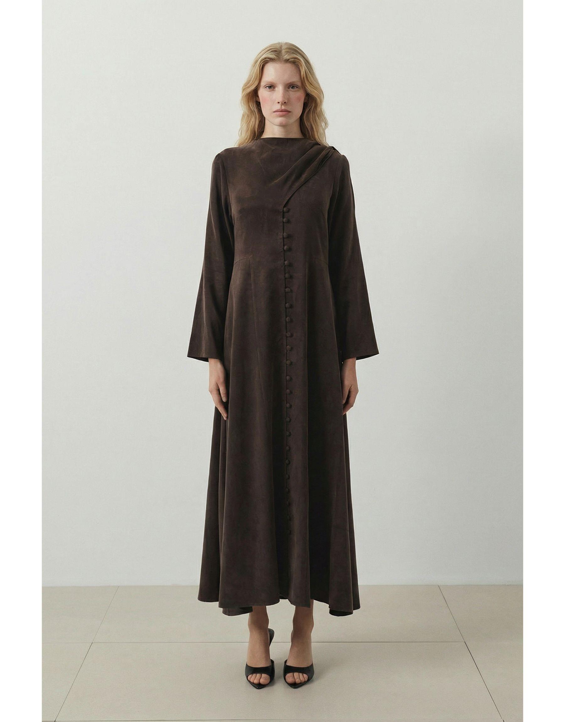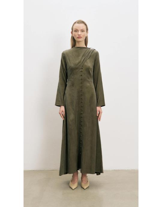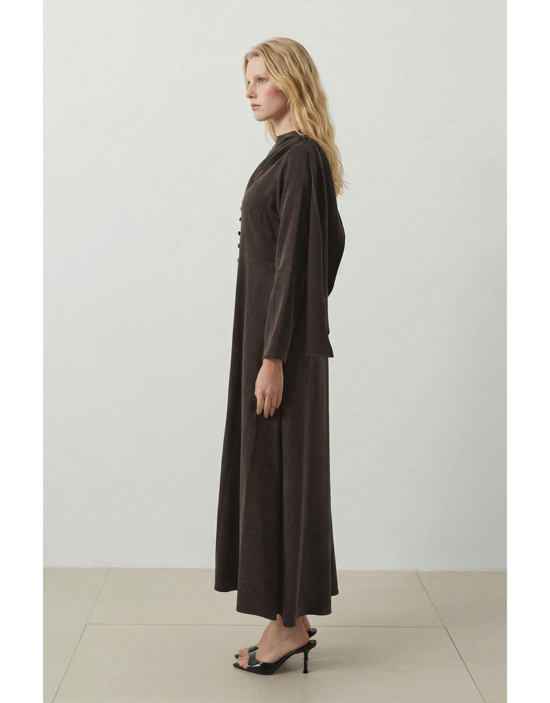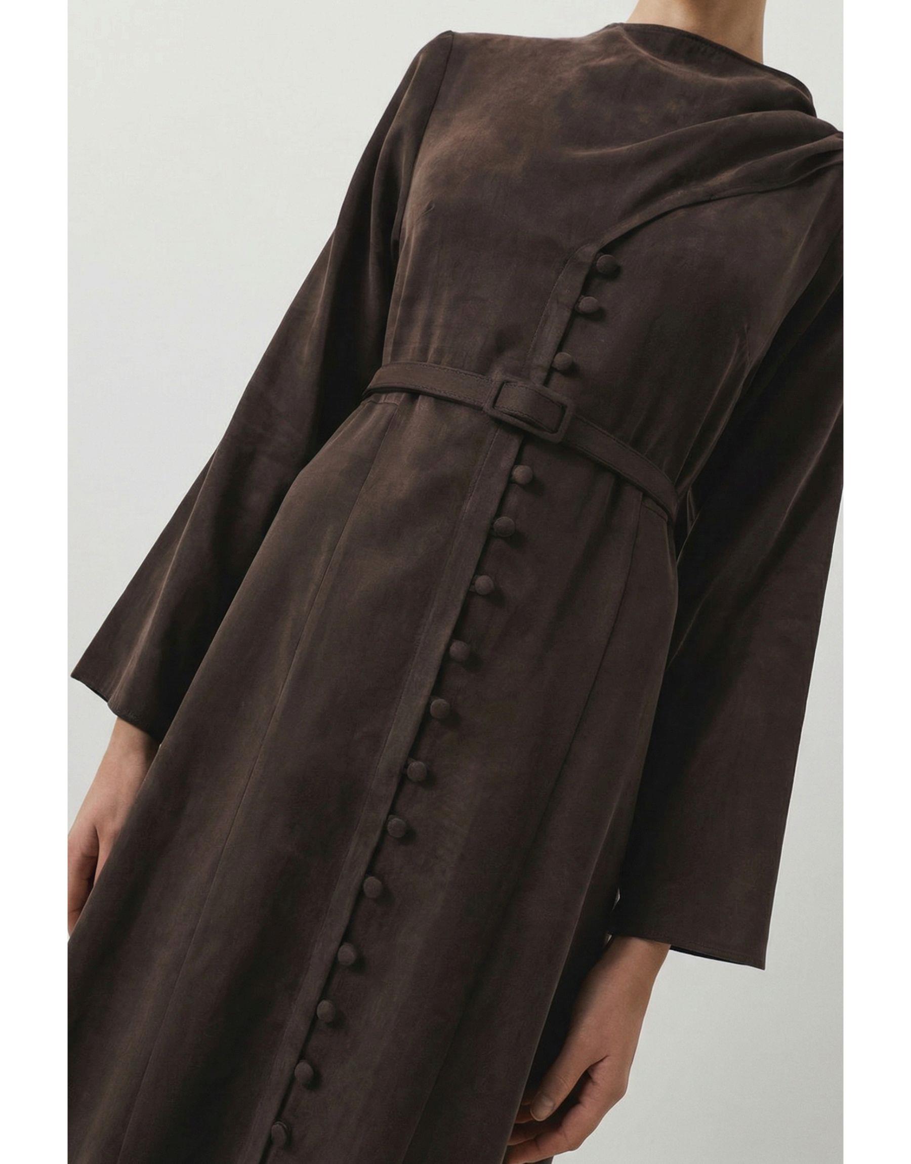 Dante Lyocell Şal Detaylı Britli Elbise | terzi-dukkani