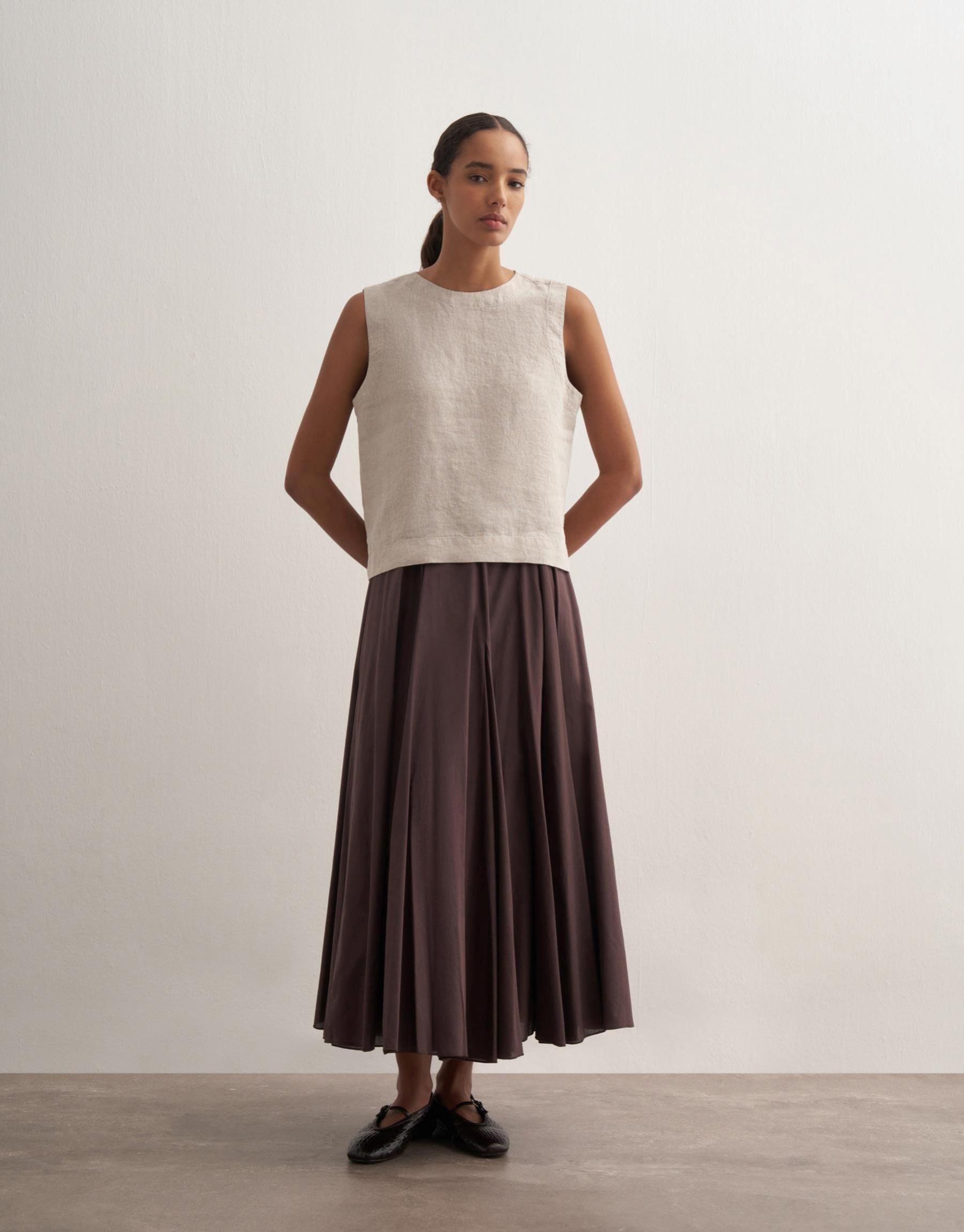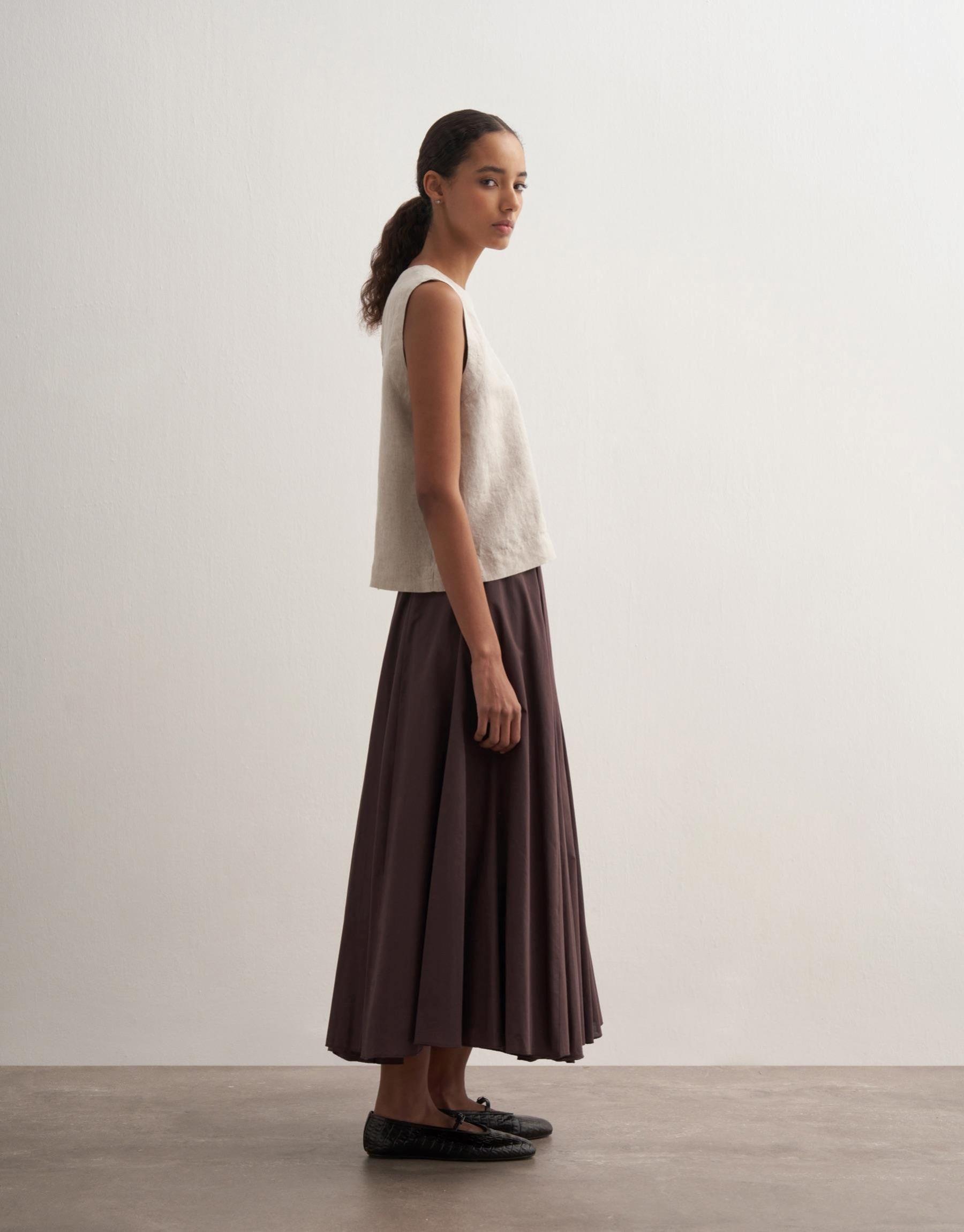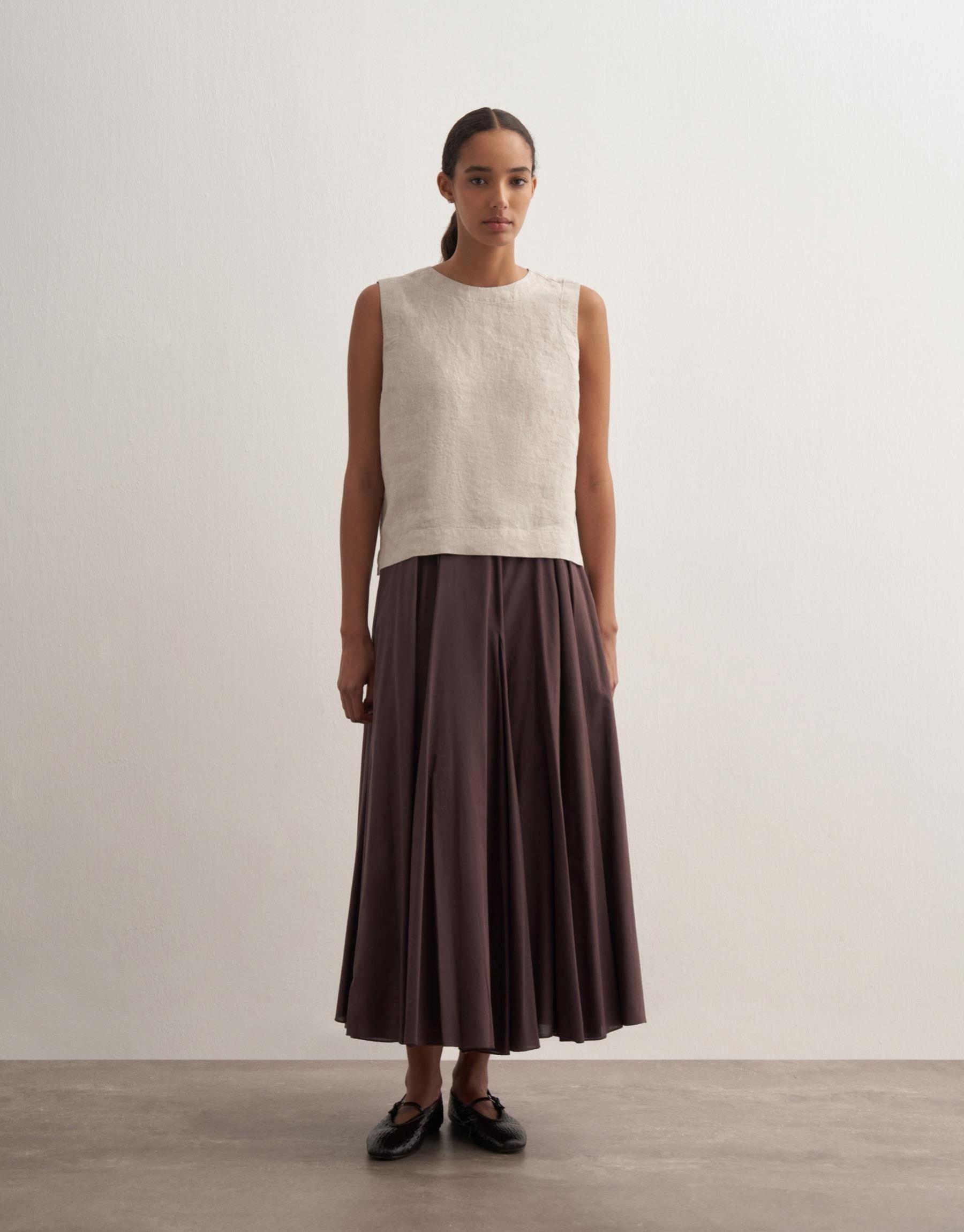 Parçalı Koton Etek Kahve