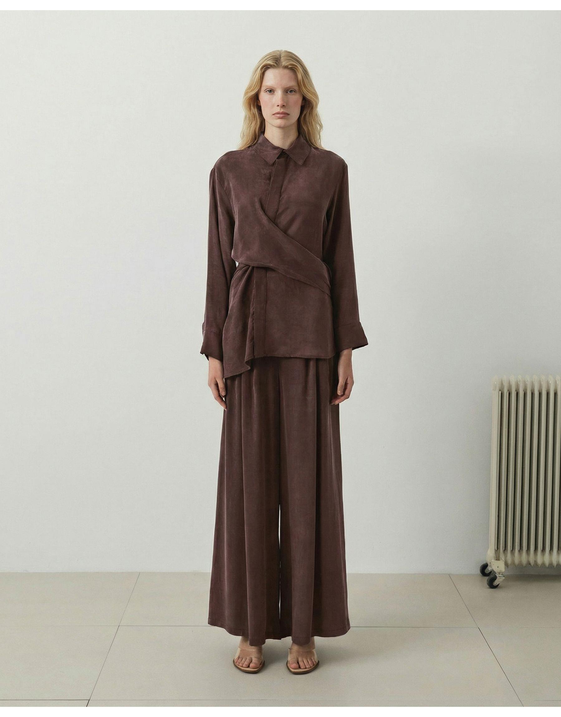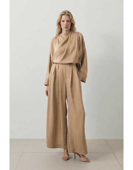 Pastel Taşlanmış İpek Pantolonlu Takım | terzi-dukkani