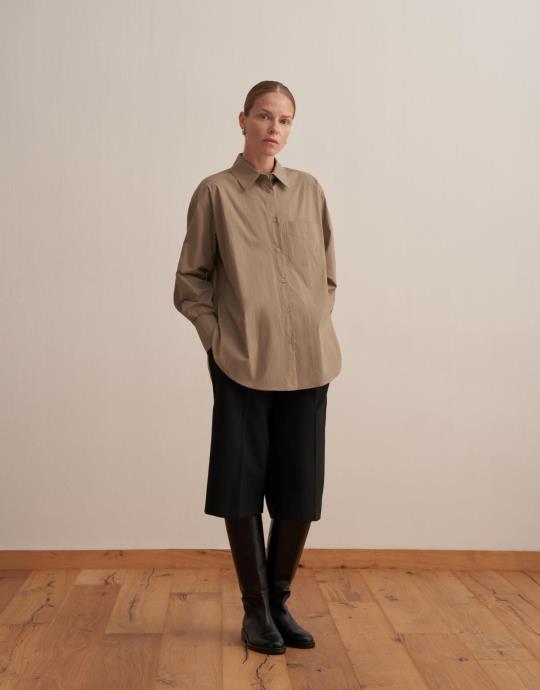 Yırtmaç Detaylı Koton Gömlek Açık Haki