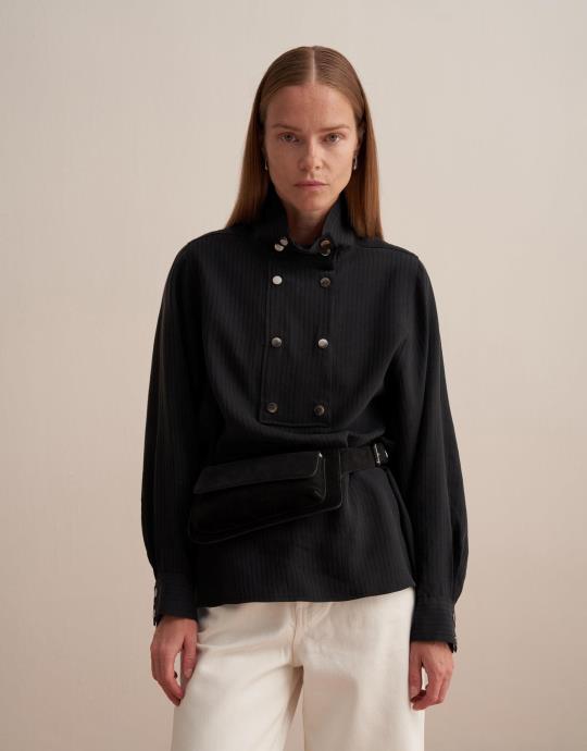 Çıtçıt Kapamalı Dökümlü Gömlek Siyah