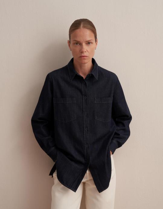 Yırtmaç Detaylı Denim Gömlek Mavi