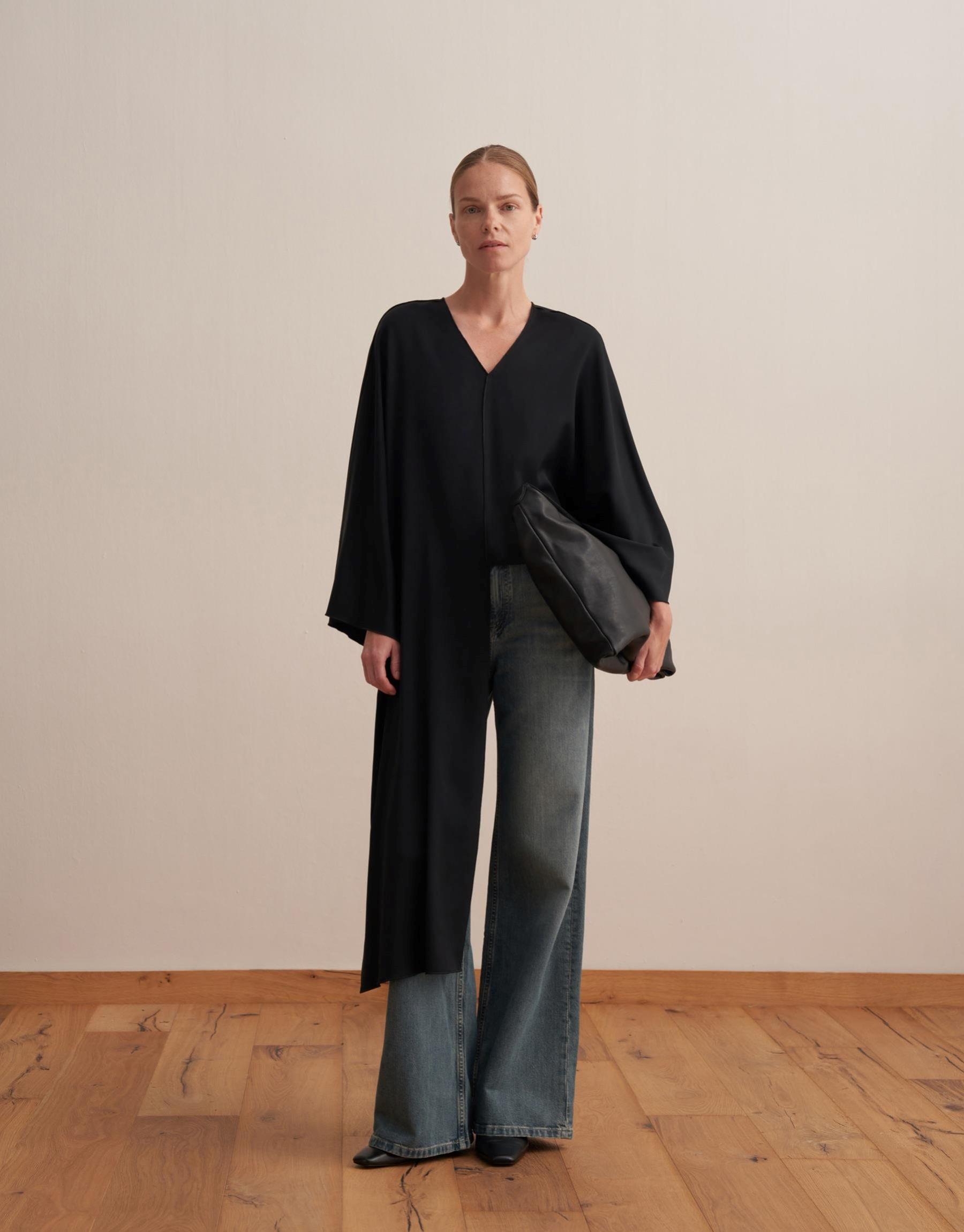 Çıt Çıt Kapamalı İpeksi Gömlek Lacivert