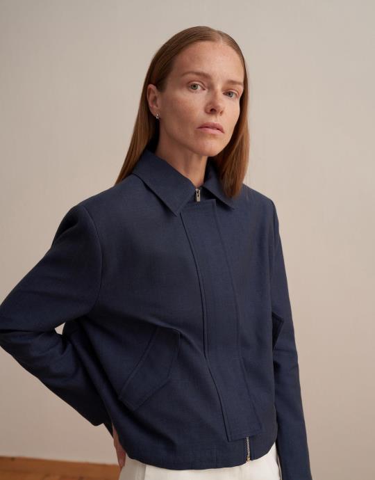 Keten Karışımlı Vatkalı Ceket Lacivert
