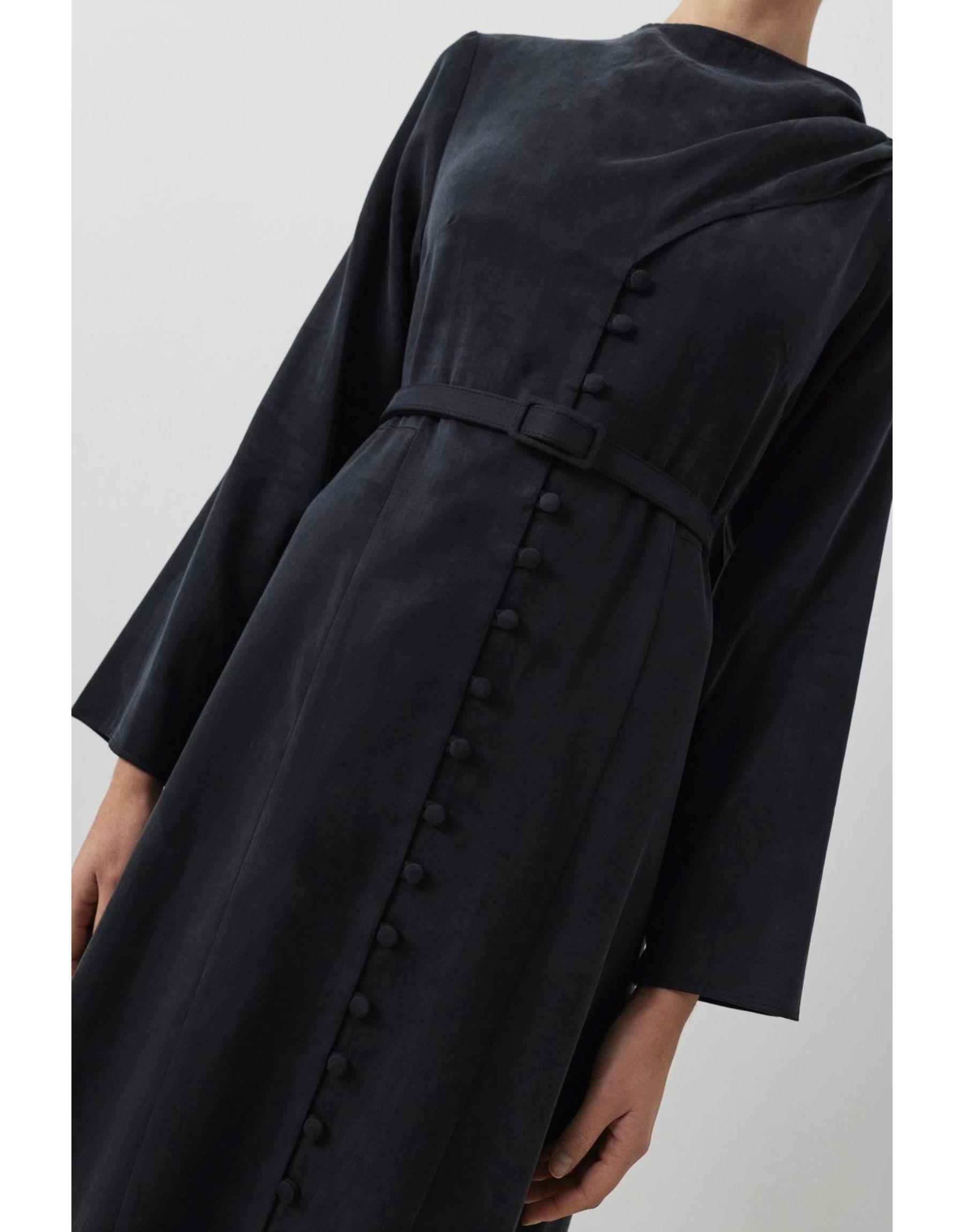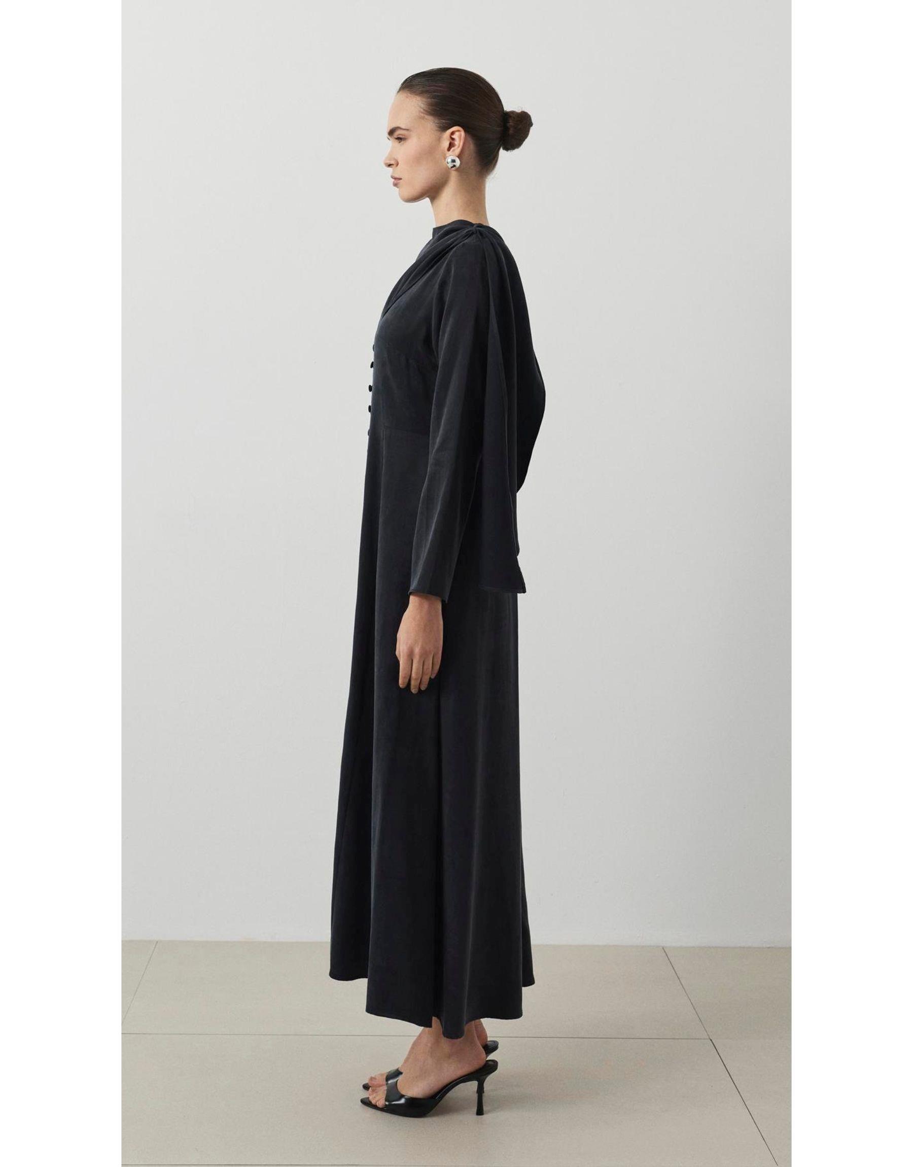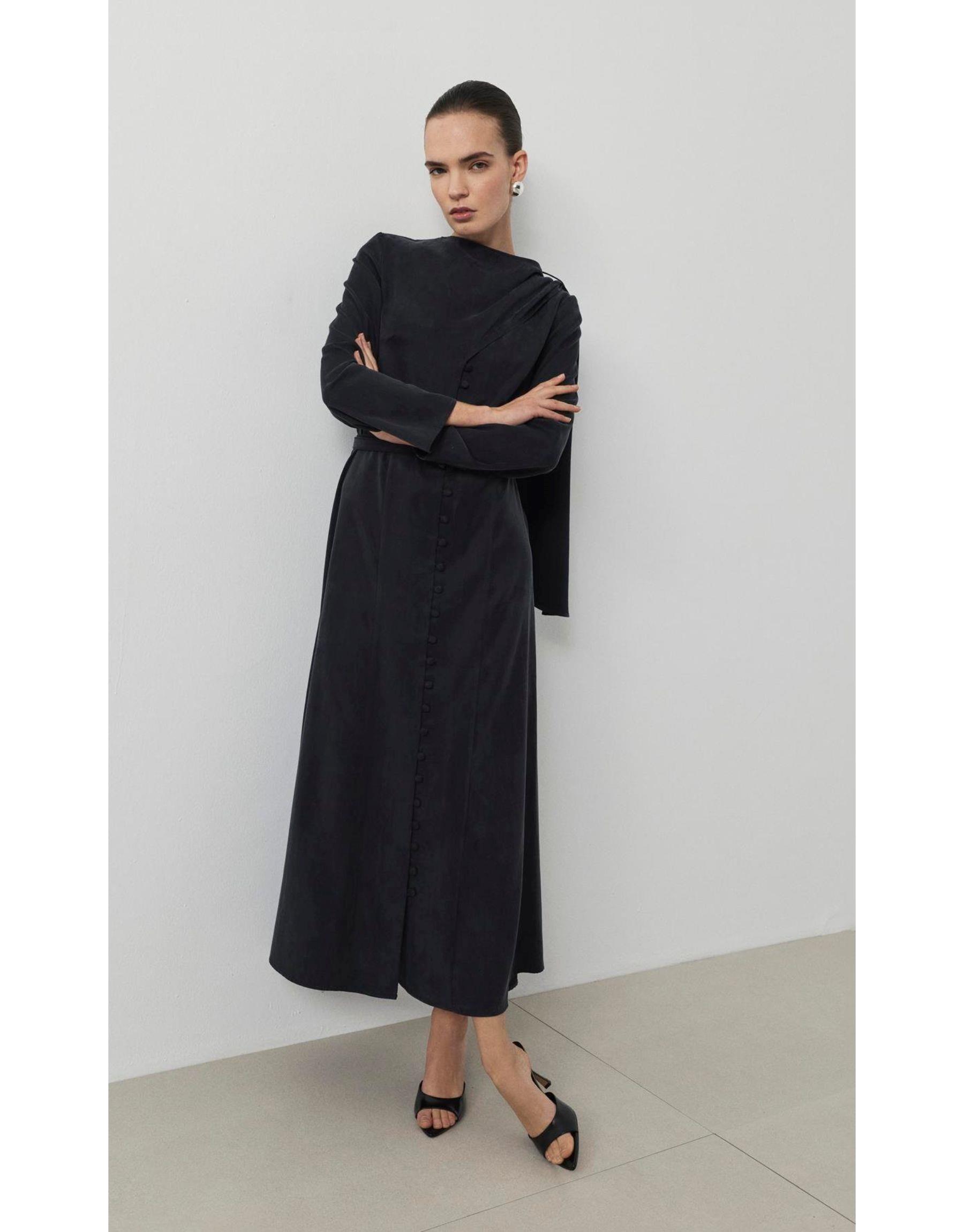 Dante Lyocell Şal Detaylı Britli Elbise Siyah