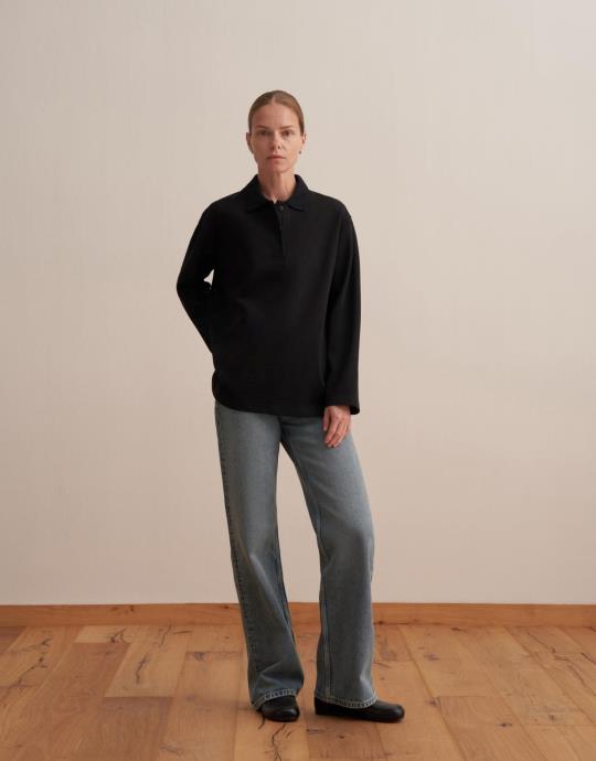 Polo Yaka Sweatshirt Siyah