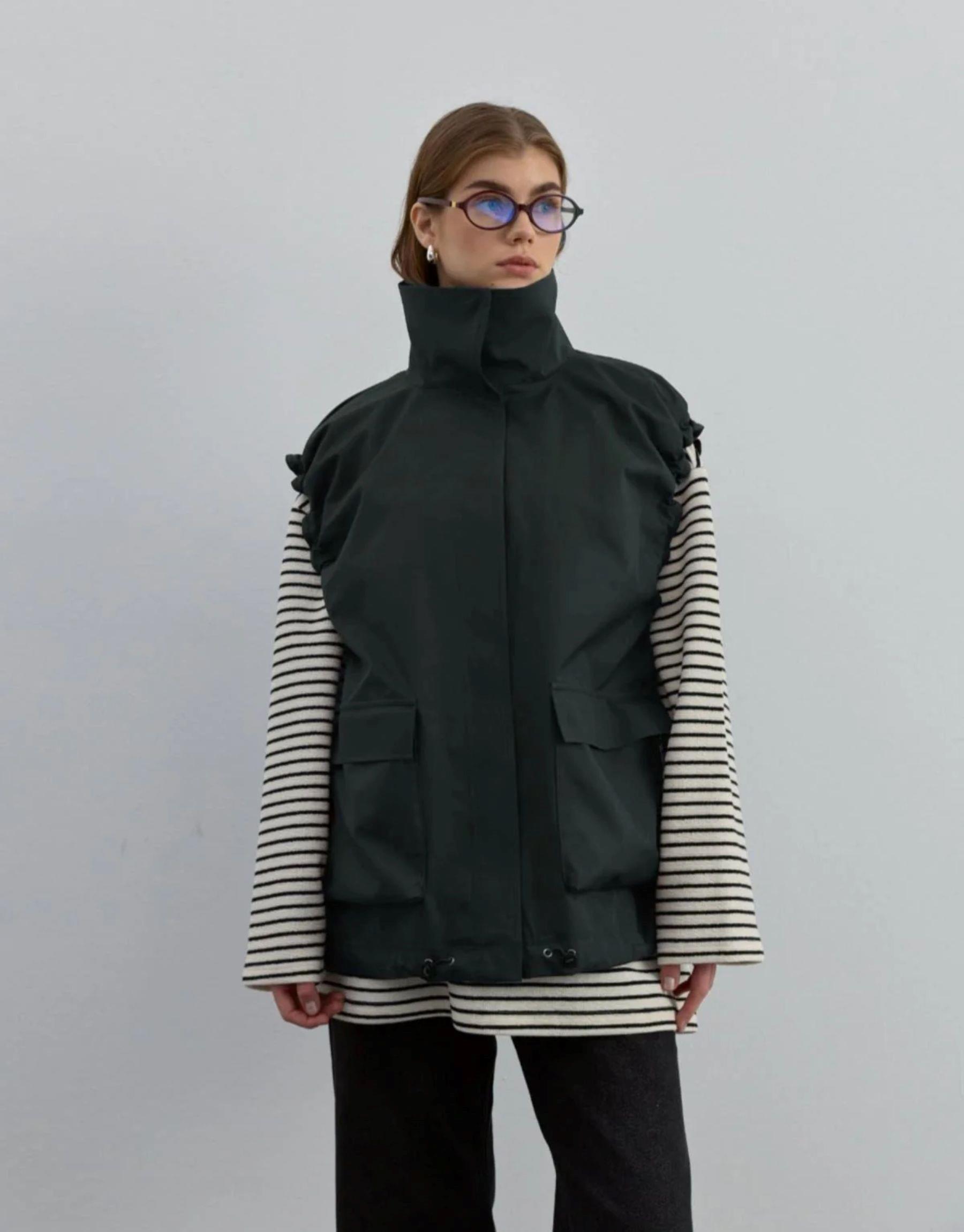 Fermuar Kapamalı Volanlı Yelek Çağla Yeşili