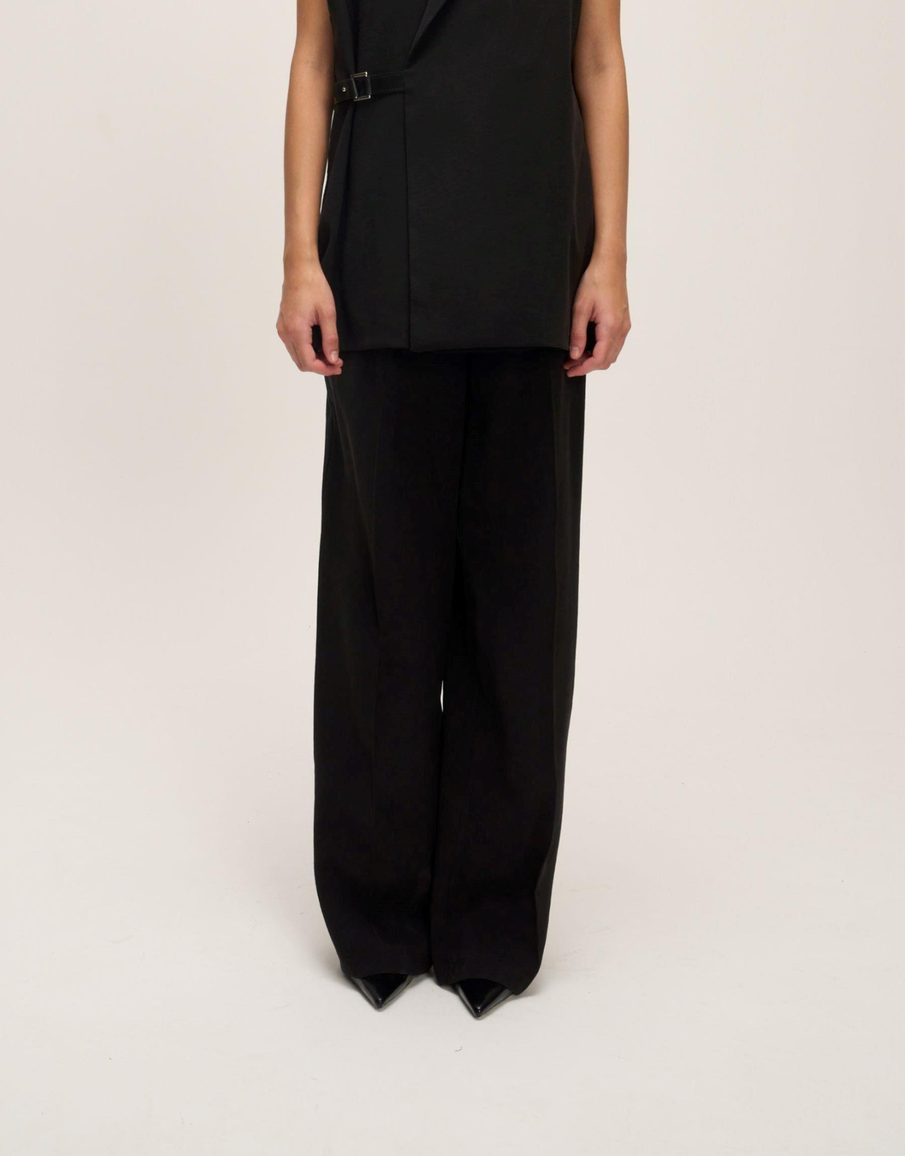Paçası Ayarlanabilir İpeksi Pantolon Lacivert
