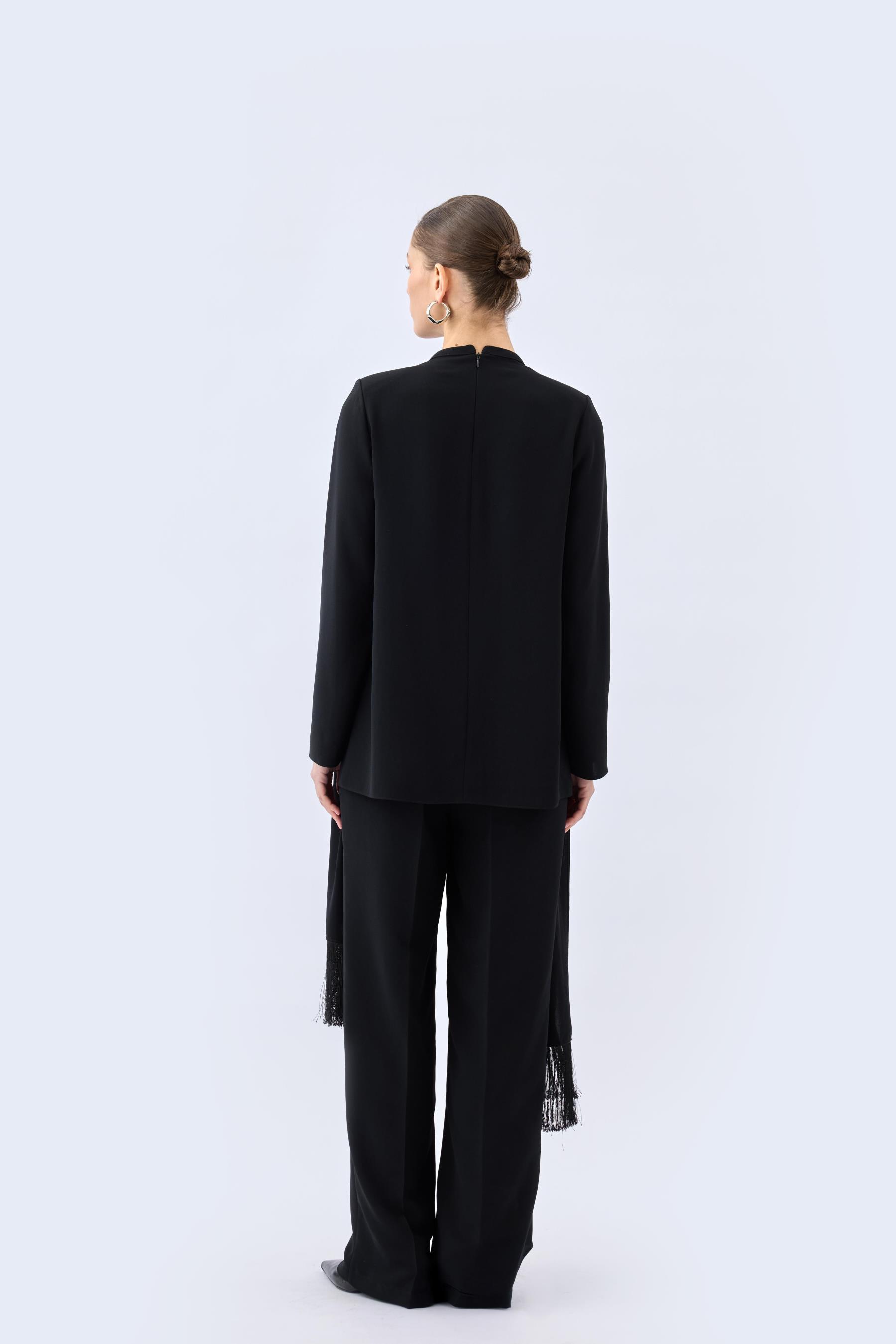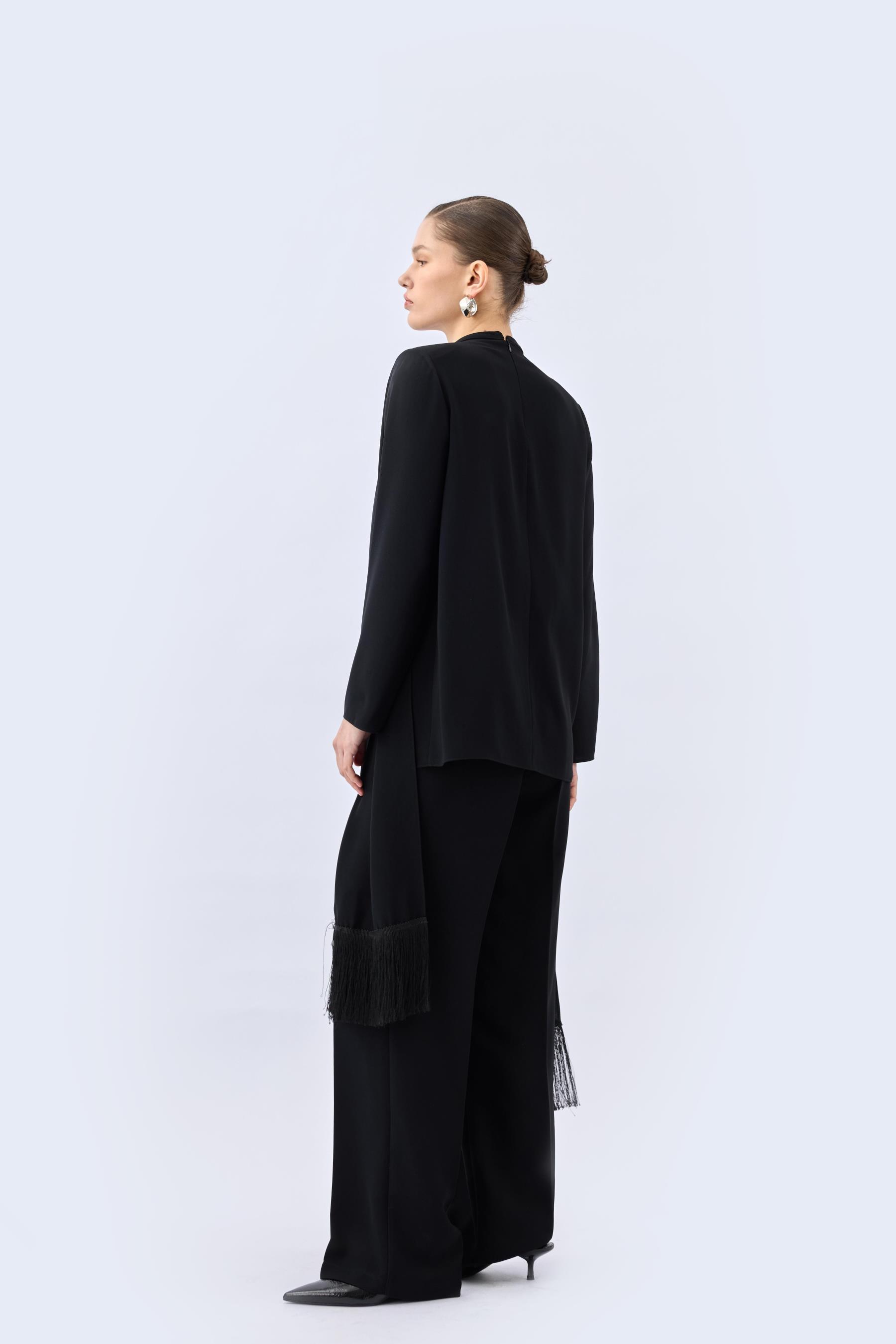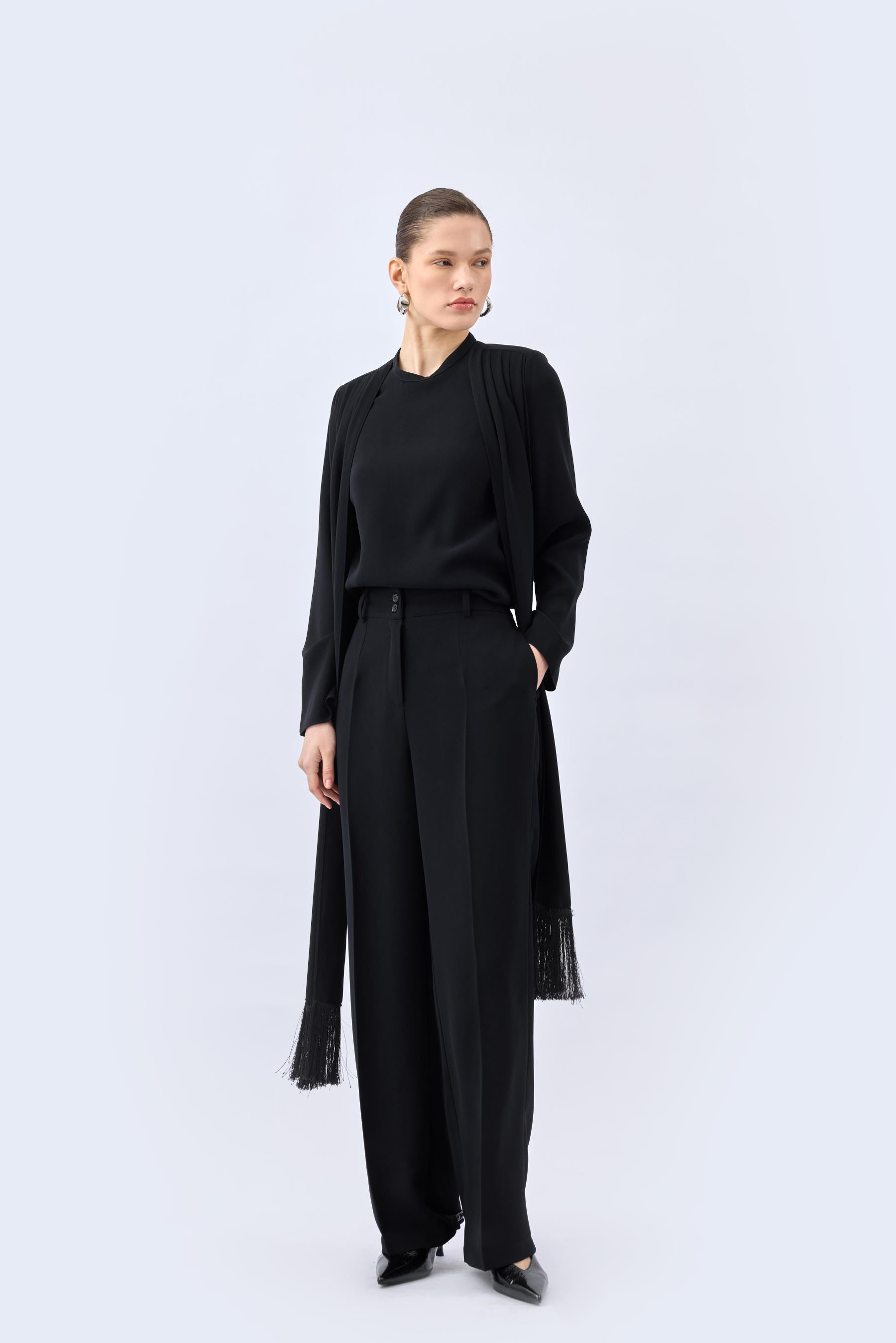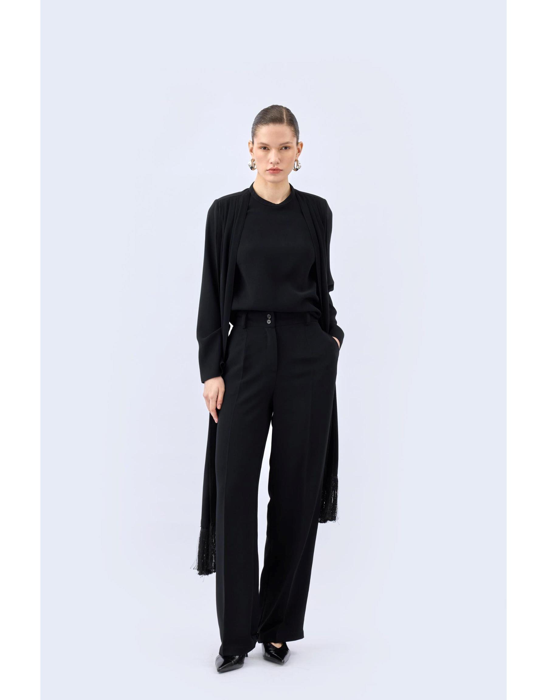 Pileli Dökümlü Pantolon Siyah