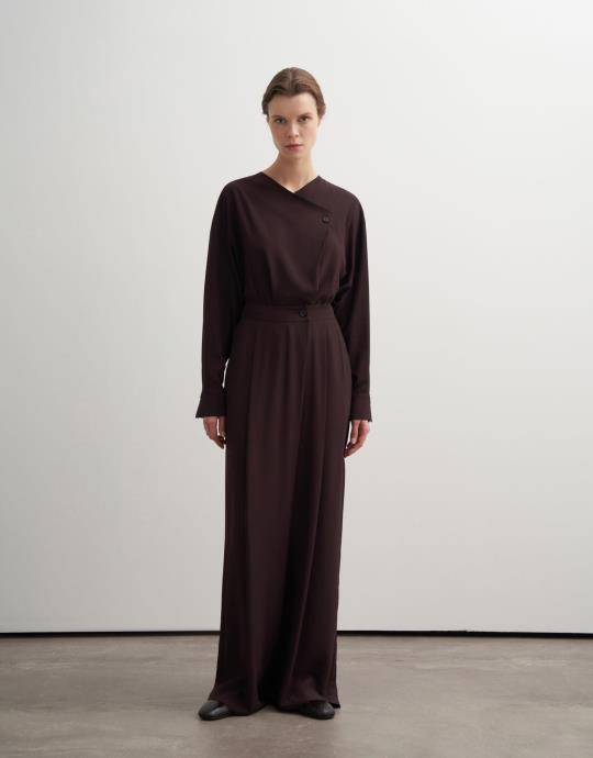 Asimetrik Kesim Dökümlü Pantolon Kahve
